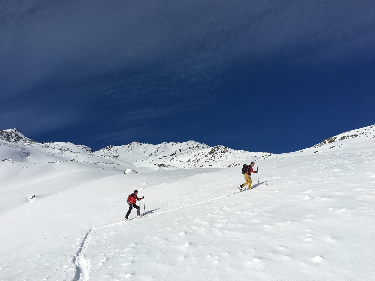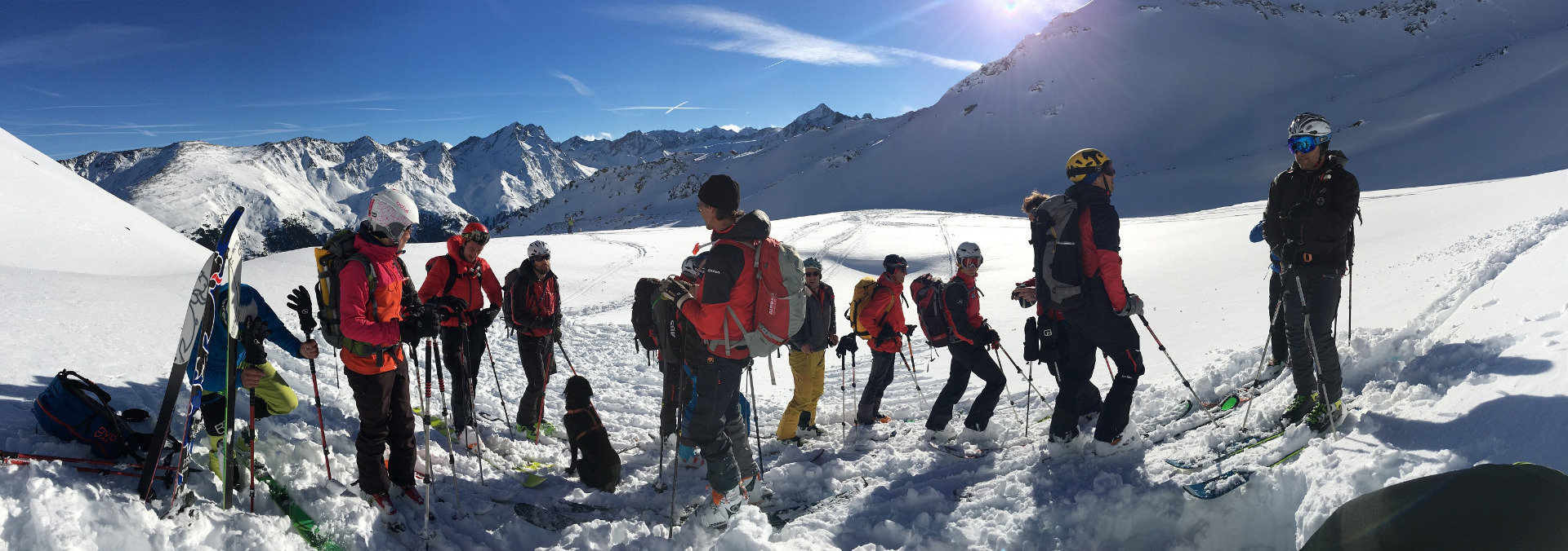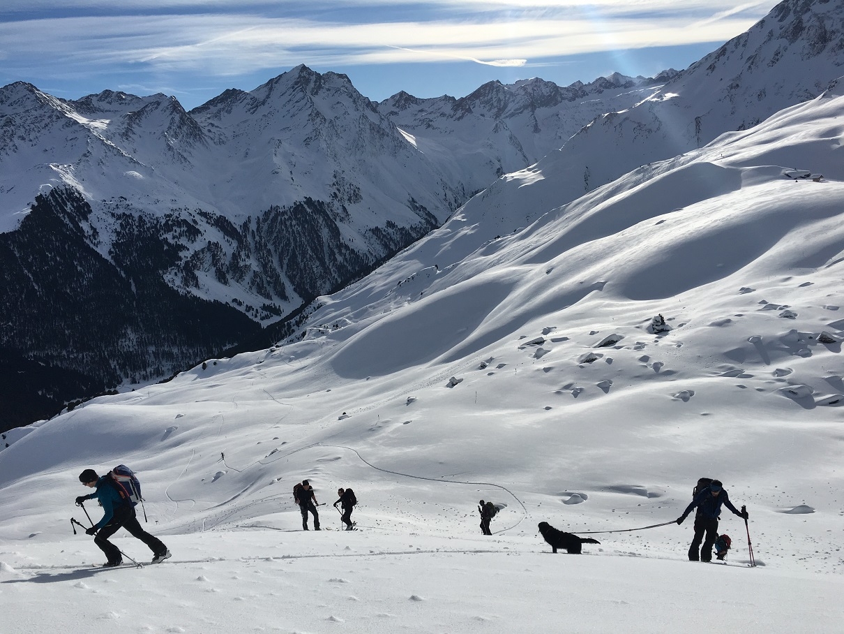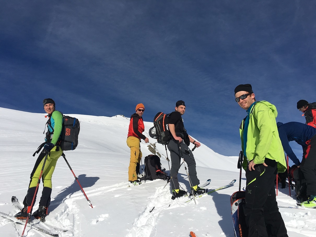 Übungstour im Rahmen der Fortbildung. Kartenstudium, Wetter- und Lawinenlagebericht, Beurteilung im Gelände, Spurwahl und Spuranlage…