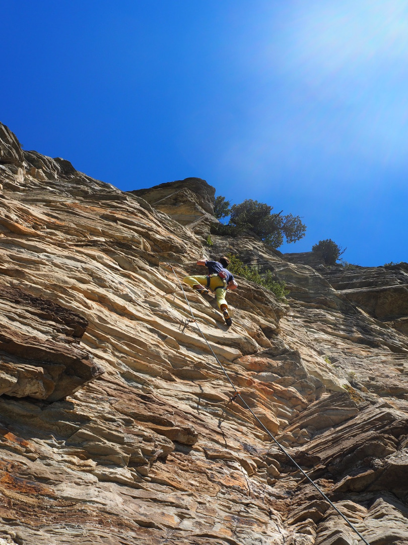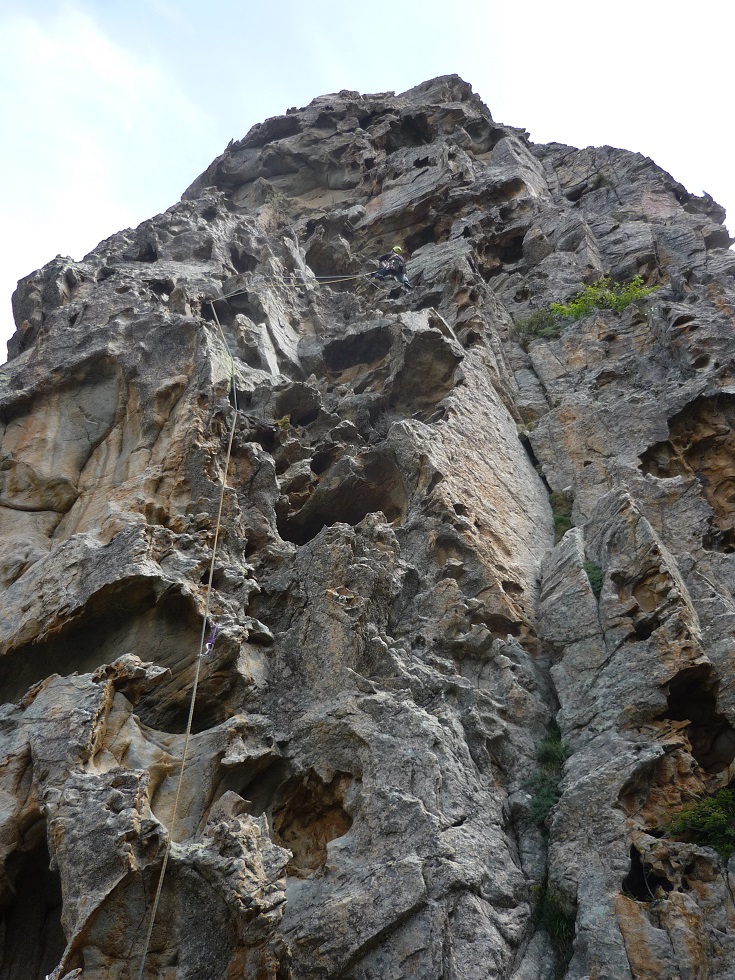 Und bei jedem unserer Ausflüge waren wir ob der Felsqualität, der Linie“und der Absicherung begeistert. Zudem ist das kletternde Volk hier rar, und das bedeutet dann: kein Speck auf den Griffen, kein Lärm im Klettergarten, kein Rummel an den Standplätzen.
