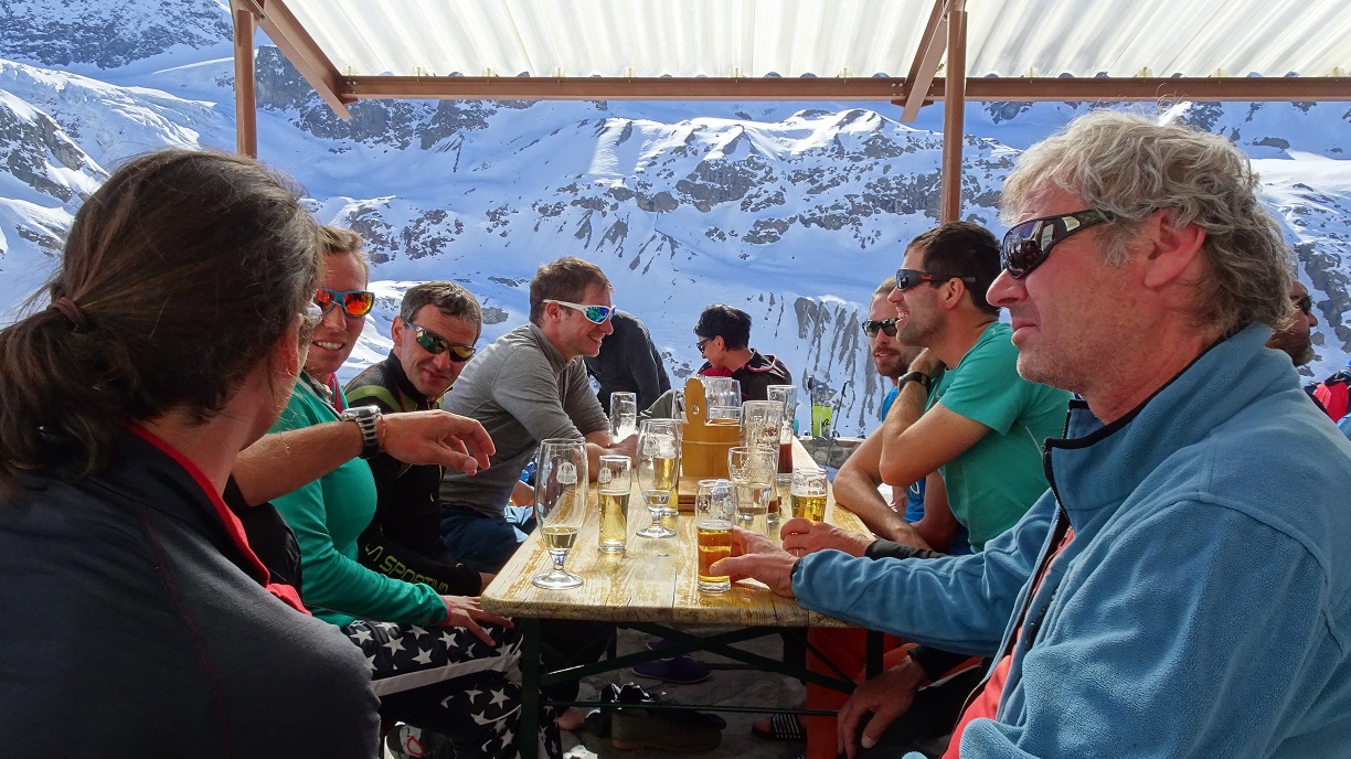 Gekrönt wurde das Wochenende durch tiefgreifende und erkenntnisreiche Gespräche auf der Wiesbadener Hütte. Wirtsleute und Personal haben die dringendsten Bedürfnisse (Trinken und Essen) der Tourengeher erkannt und sorgen für schnelle Befriedigung derselben.