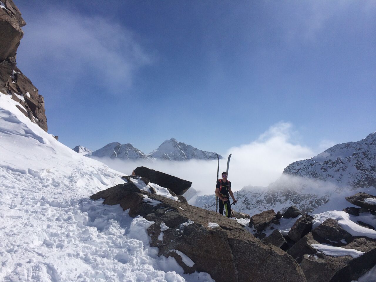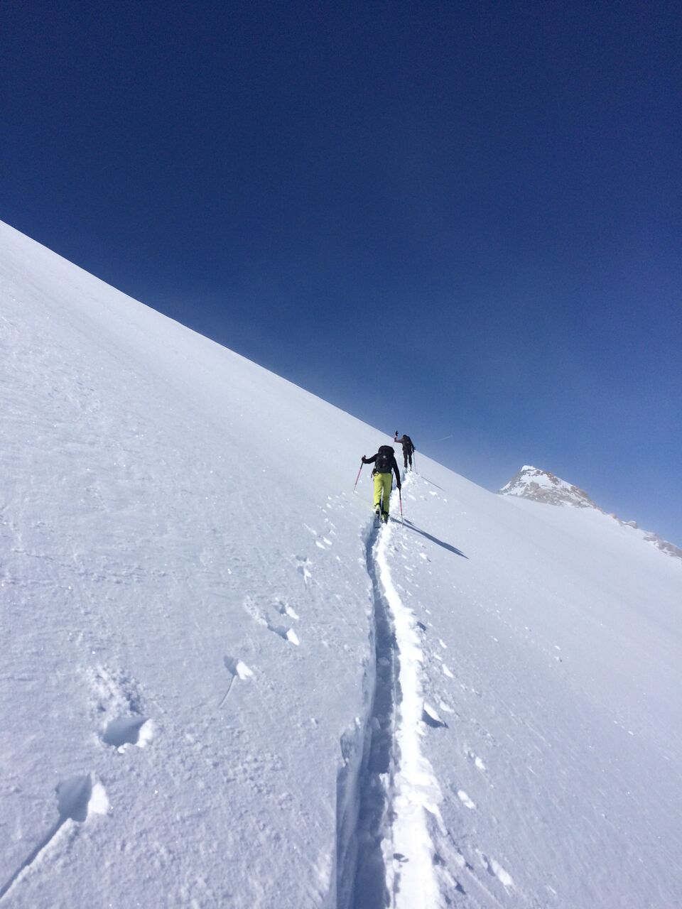 Endlich ist mir klar, warum das Hinterbergl eben Hinterbergl heisst. Neben doch zahlreichen Höhenmetern ist auch eine erkleckliche Entfernung zurückzulegen, bis man hinter dem Berg das Hinterbergl erreicht. Zum Glück war die Schneekonsistenz perfekt, sonst wäre die Abfahrt im Nebel wohl ziemlich spannend gewesen. TAB in der Franz Senn Hütte.