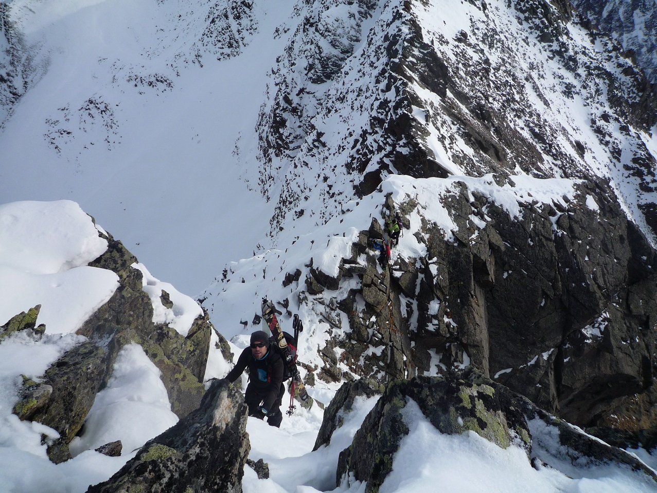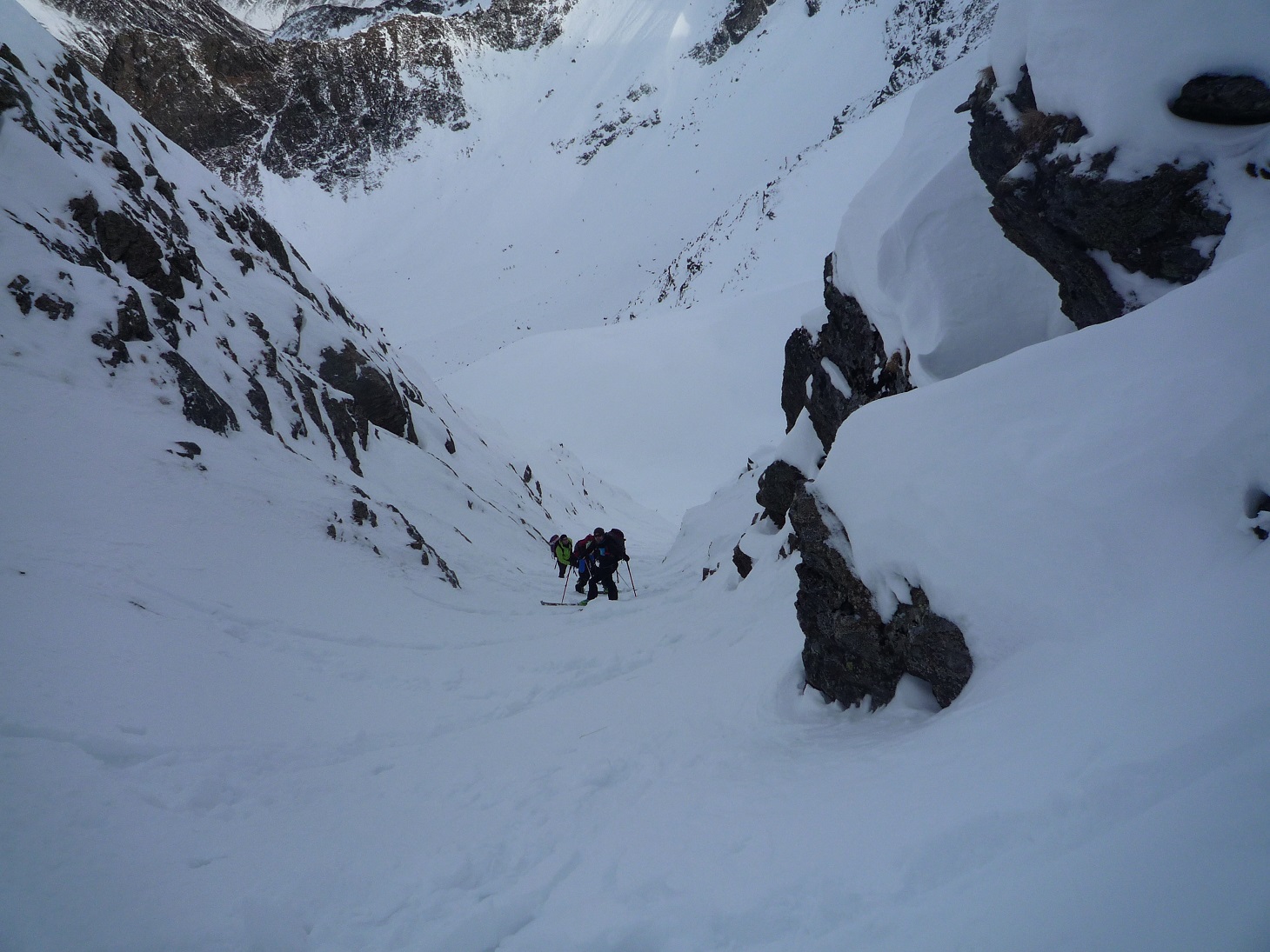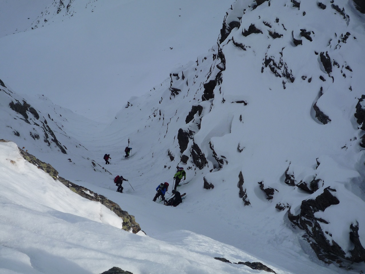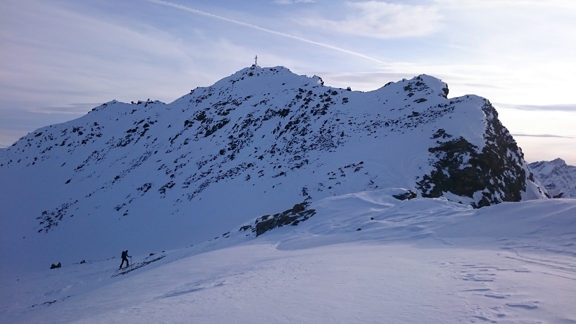 Auf Grund der dürftigen Schneelage ist es derzeit nicht ganz einfach, ein adäquates Schitourenziel zu finden. Sonnseitig sowie unterhalb von 1800m Seehöhe hat man mit Schiern nichts verloren. Deshalb starteten wir im Kühtai und wühlten uns zunächst durch die Nordrinne und den Klettersteig auf den Pockkogel. Sodann Abfahrt durch das Steintal (im unteren Teil Pulverschnee) bis zur Hinterzwing. Felle wieder aufgeklebt und noch zügig hinauf auf den Zwieselbacher Roßkogel, wobei sich die Tourengruppe durch konditionelle und technische Problemchen stetig dezimierte. Abfahrt? Na wer geht schon wegen der Abfahrt auf Schitour? Dabei darf eigentlich nicht gejammert werden. Im oberen Teil Pulver, dann Bruchharsch auf tragfähigem Untergrund (keine Steinkontakte!) und am Weg durch das Kraspestal auf durch Schidoo verdichteter Minimalschneeauflage.
