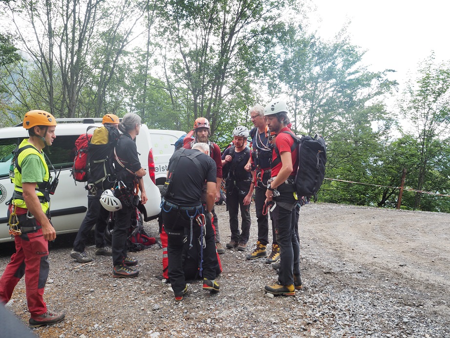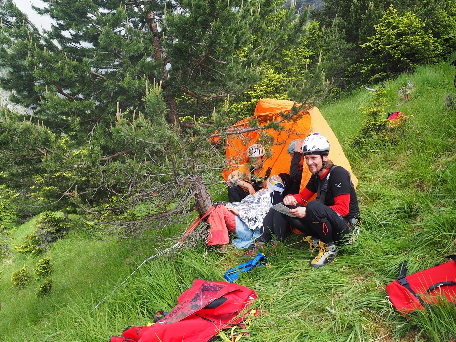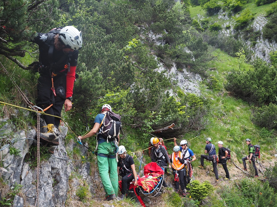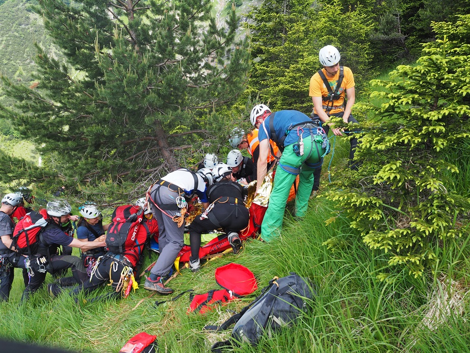 Der Isobarensumpf hat Tirol weiterhin fest im Griff. Zumindest blieben wir während der Übung von Regengüssen verschont. Übungsannahme war der terrestrische Abtransport einer verletzten Person. Das Gelände war“ – realistisch – advanced.