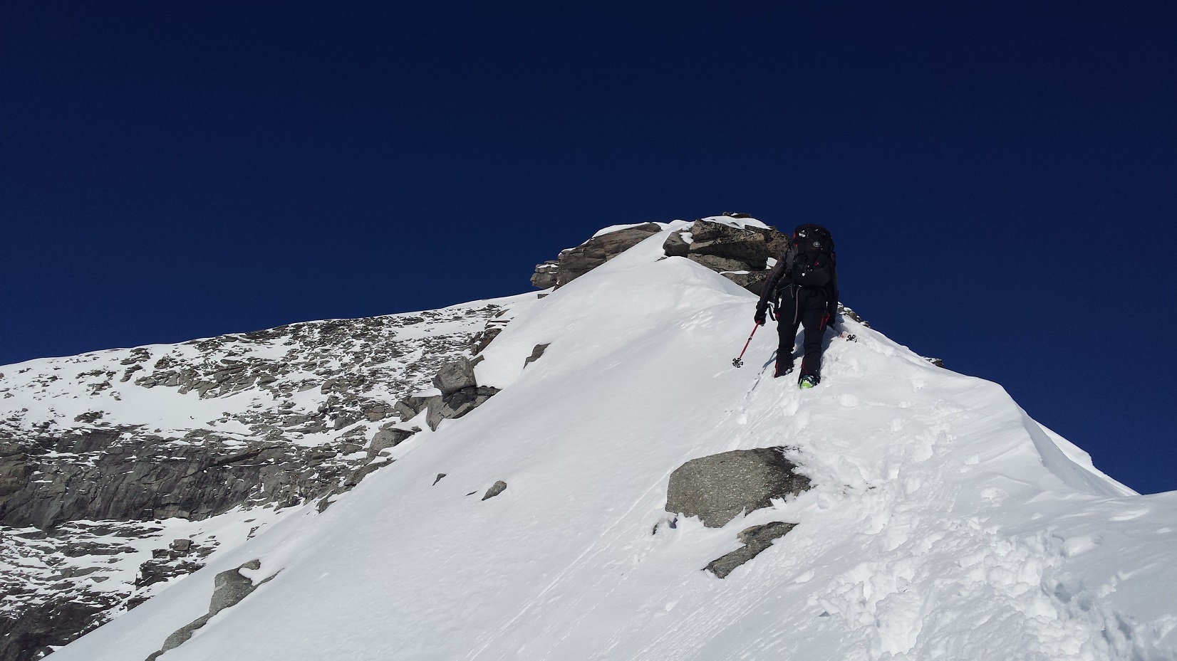Beim Start in Stein zeigt sich das für den heurigen Winter typische Bild: die Schneelage ist dürftig. Aber der Schnee ist tragfähig, und sobald man sich auf dem Sommerweg durch den Latschengürtel geschwindelt hat werden die Bedingungen erstaunlich gut. Zu unserer Freude haben keine anderen Tourengeher den Schrammacher als Tourenziel erkoren, und so durften wir den Neuschnee im Aufstieg und bei der Abfahrt ganz für uns alleine geniessen.