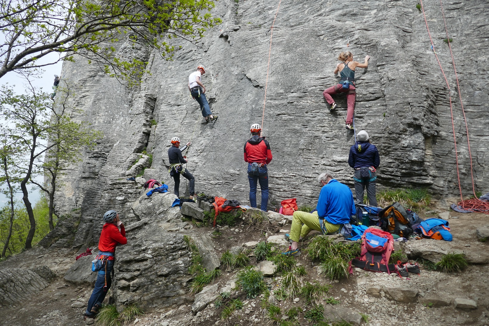Eigentlich gibt es fast nur Positives zu berichten: Kurze Zu- und Abstiege, ein bunter Mix aus Klettergärten und Mehrseillängentouren, vernünftige Absicherung, eine sonnige Hüttenterrasse für das TAB quasi in Einstiegshöhe… und zudem die Erkenntnis, dass hier der Tourismus die Gastronomie noch nicht zur Durchsetzung hoher Preise animiert hat (Cappuccino um 1,70€, Pizza zwischen 5 und 10€…).
