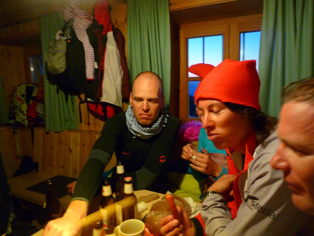 Faschingsfestl in lockerer Athmosphäre auf der Bergrettungshütte. Zu später Stunde erhielten wir noch Besuch von Freunden, die auf dem Weg ins Tal eine Stärkung benötigten.