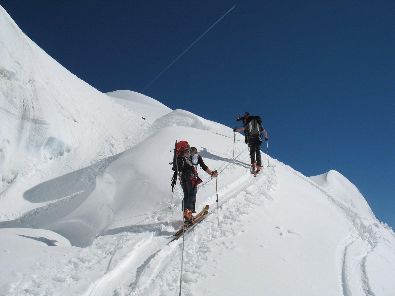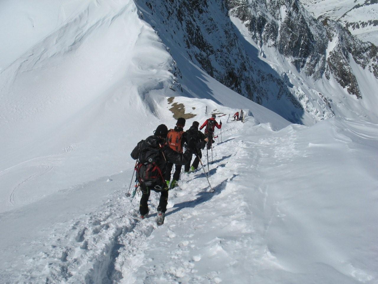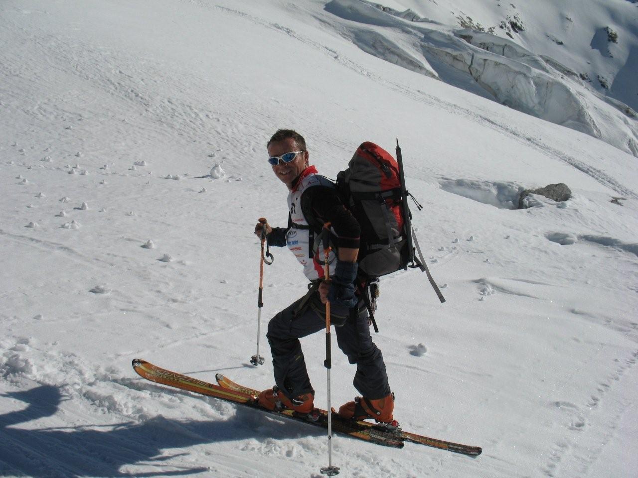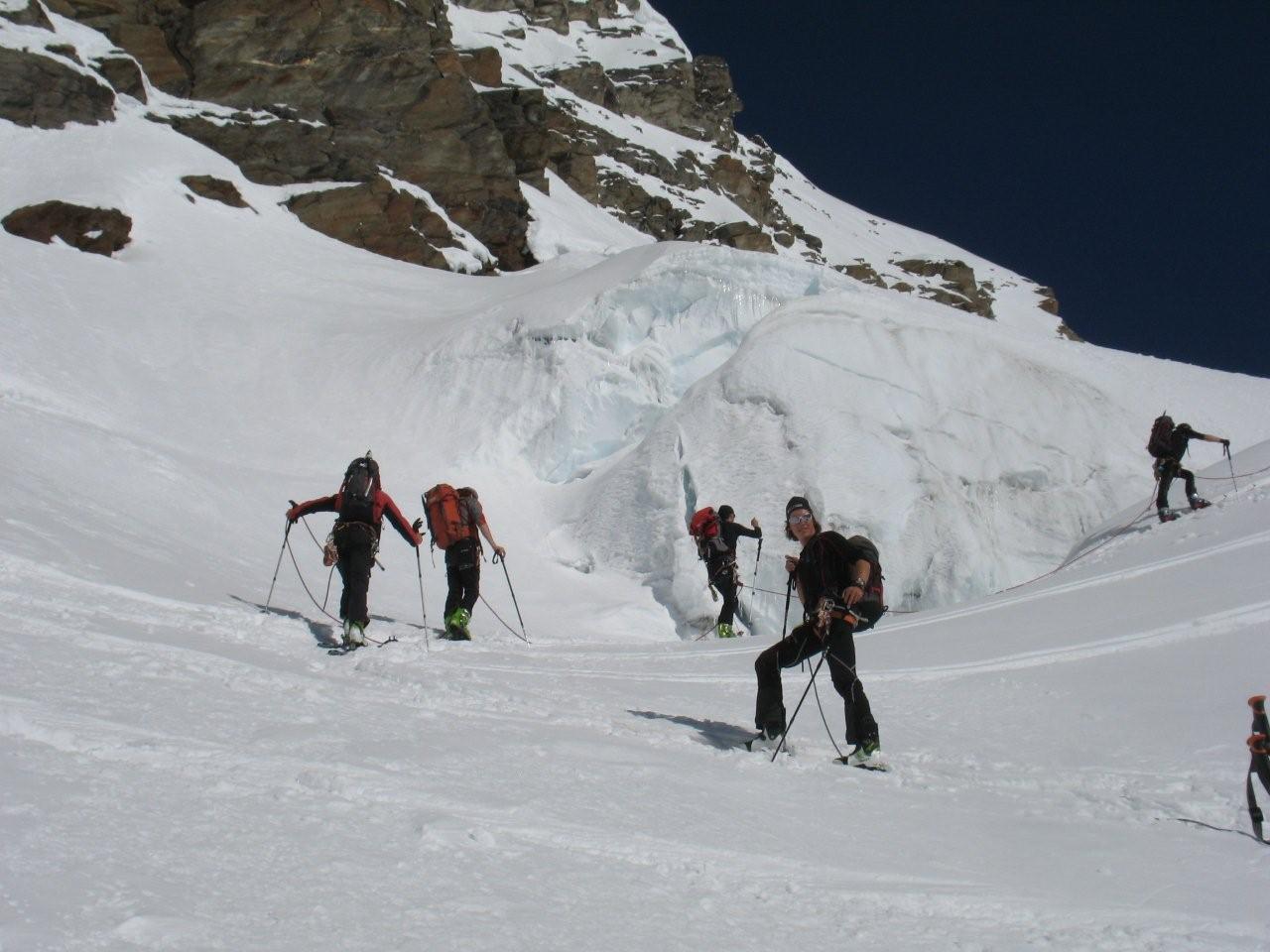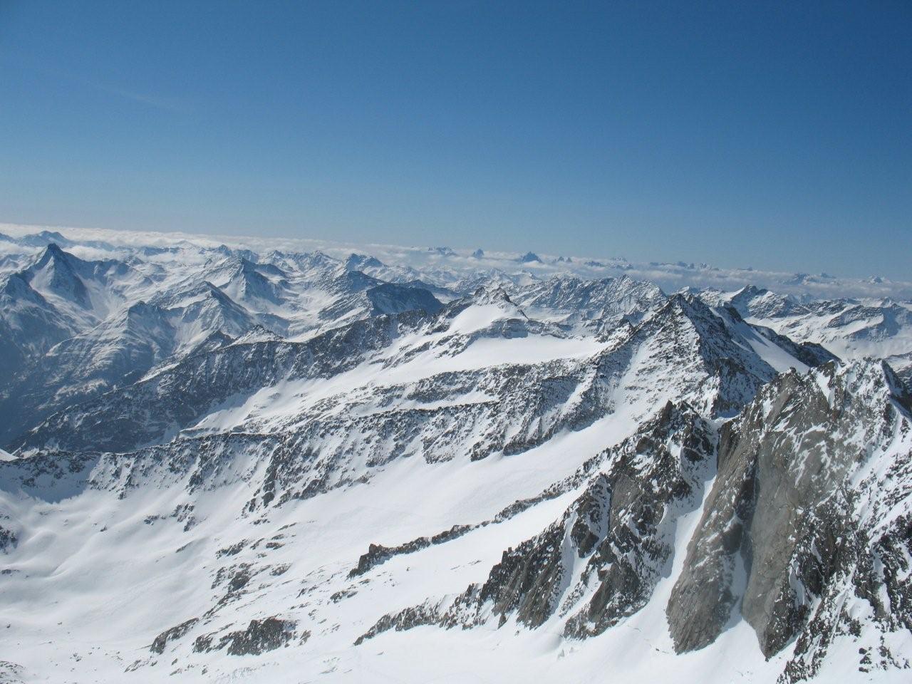 Sonntag 17.4. Motto des Tages: bloss nichts übertreiben.“Ein frostigen Start in den Tag. Die Aufstiegsspur war zum Teil glasiger als der Blick seiner Benutzer, was zu einem Zwischenfall mit glimpflichem Ausgang führte (obwohl der sich Richtung Gletscherbruch verabschiedende Schi heuer eh nicht mehr gebraucht wird). Mit ausgebrannten Kehlen (nein nicht des Alkoholkonsums wegen, sondern auf Grund der massiv einsetzenden Sonneneinstrahlung und der trockenen Luft) erreichten wir den Gipfel der westlichen Simonyspitze, der eine grandiose Fernsicht zwischen Marmolada und Bettelwurf bot. Abfahrt über Umbalkees und Reggentörl“in durchwegs vergnüglicher Schneekonsistenz zurück zur Hütte. Nach Erholung auf der Hüttenterrasse ging es wieder leichtfüßig (weil ohne Gepäck) zurück zum Parkplatz Ströden. „Dort mussten wir uns erst einmal Platz im Laderaum des Busses erkämpfen, da Gustl seine Liebe zur Geologie entdeckt hat und tonnenweise Steine eingeladen hatte. Nach Zwischenstopp bei einem Kebapstand in einem Tiroler Nobelschiort erreichten wir noch vor einbrechender Dunkelheit wohlbehalten Hall.