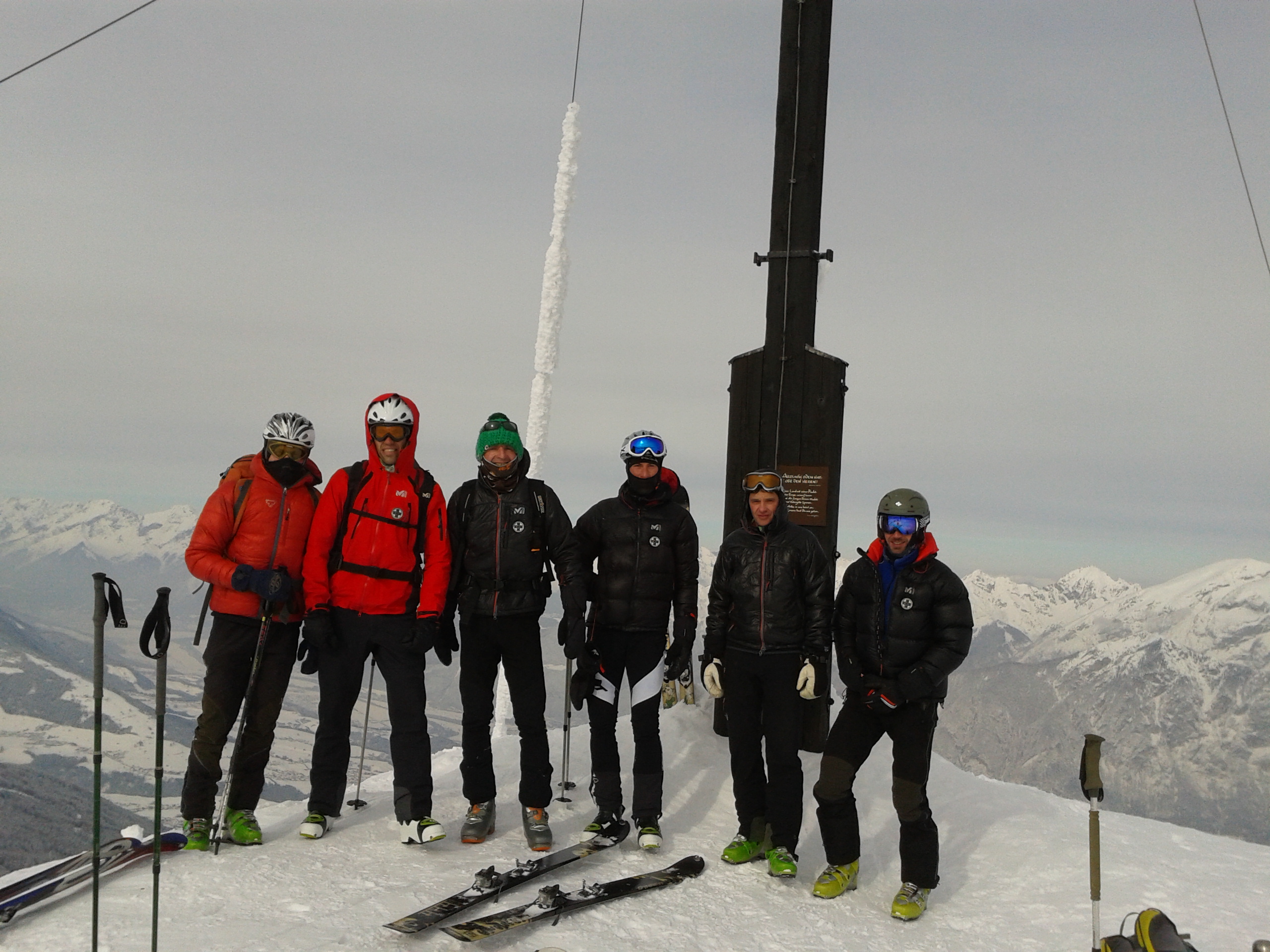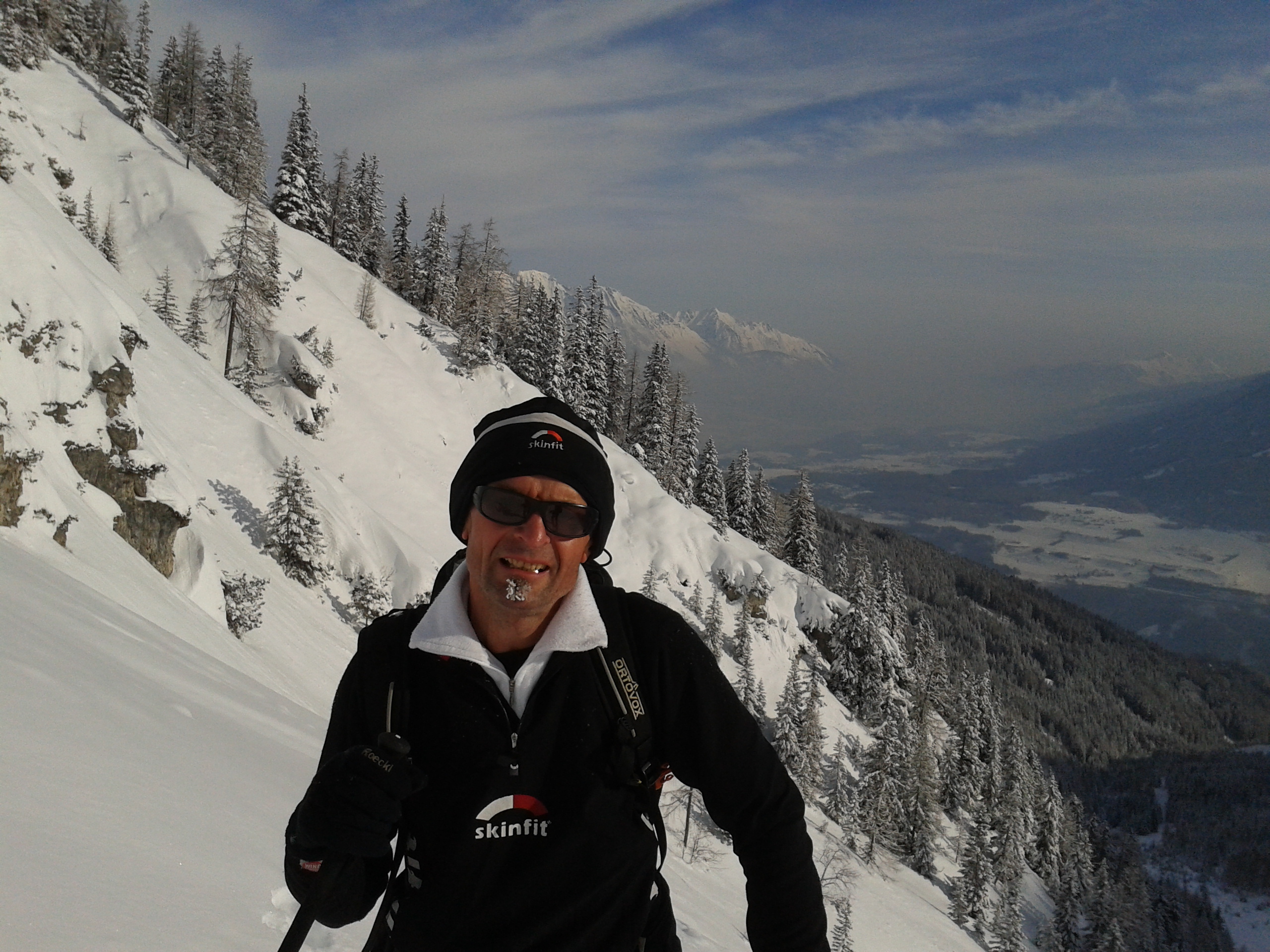 Los gings hochwinterlich spät nach Mutters, von wo wir über die Kreithalm auf die Nockspitz aufstiegen. Zwischendrin hatte man für uns eine hochalpin enge Rinne eingebaut, damit uns der Aufstieg nicht zu fad wird. Am Gipfel war dann dank Seilbahnen rundum einiges los, für den wärmenden „Schafherdeneffekt“ warens aber doch zu wenig Leute – wirklich ziemlich kalt, solche Temperaturen um oder höchstens knapp über -25 Grad. Erträglich wars hauptsächlich deswegen, weil praktisch kein Wind bließ.“