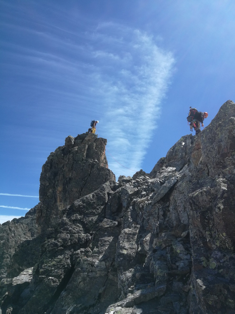 Montags ging es bei traumhaften Wetter über die Südwand auf die Totenfeldnadel und anschließend auf die kleine Totenfeldnadel. Am Dienstag wurde der Paulcketurm frierend erklommen. Donnerstag kamen