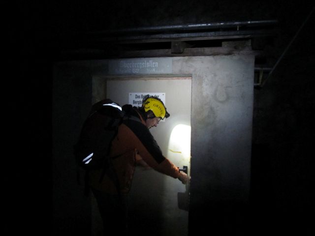 Da Mitarbeiter der Saline wöchentlich bzw. monatlich (Winter) ihre Kontrollrundgänge,“und“jährlich einige Wochen lang Instandhaltungsarbeiten durchführen,“und wir im Ernstfall die Zuständigen für eventuelle Bergungen sind, gibt es jährlich eine Stollenübung. In erster Linie heißts auf den Kopf aufpassen, wenn man über 1,2km in den Berg hineinmarschiert und mehrere Horizonte über Treppen (Schurfe) und Schächte erreicht: denn aufrecht gehen können die Normalwüchsigen unter uns nur an wenigen Stellen. Wie immer erreichten wir nach 1,5 Stunden dreckig und mit ein paar Kratzern mehr auf den Helmen wieder die frische Luft.“