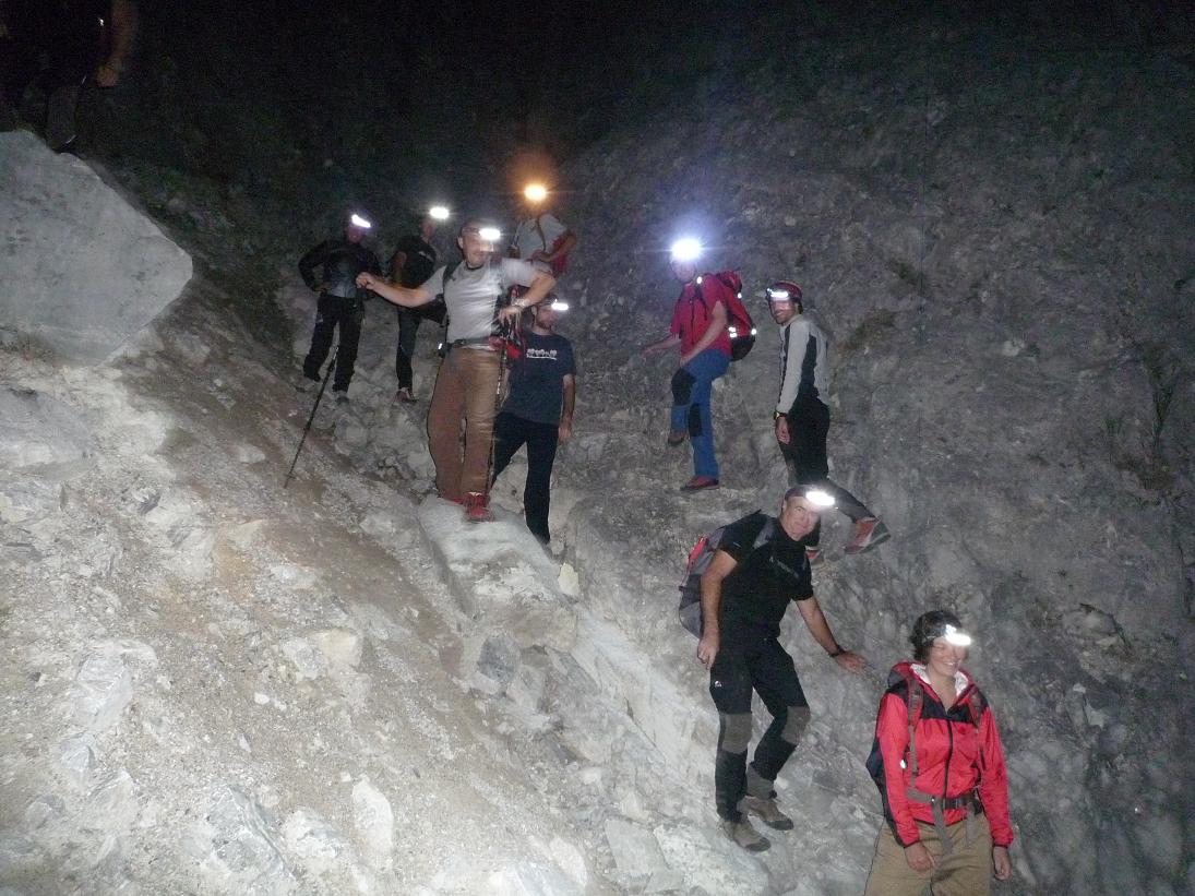Nach Erläuterung des Rettungskonzeptes erfolgte die Besichtigung des Schnellzustieges und der Abseilstellen am Kripperlerberg.“Beim Abstieg wurden wir dann hautnah mit der aktuellen Steinschlagsituation konfrontiert…..