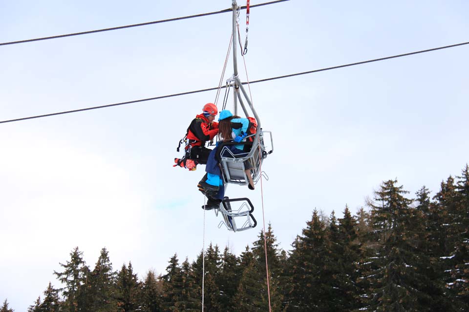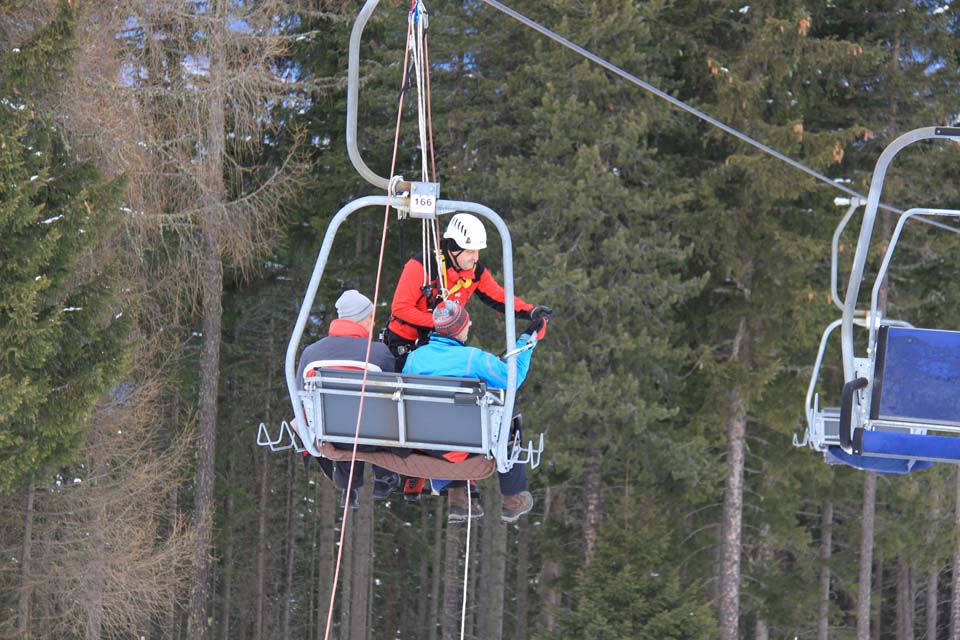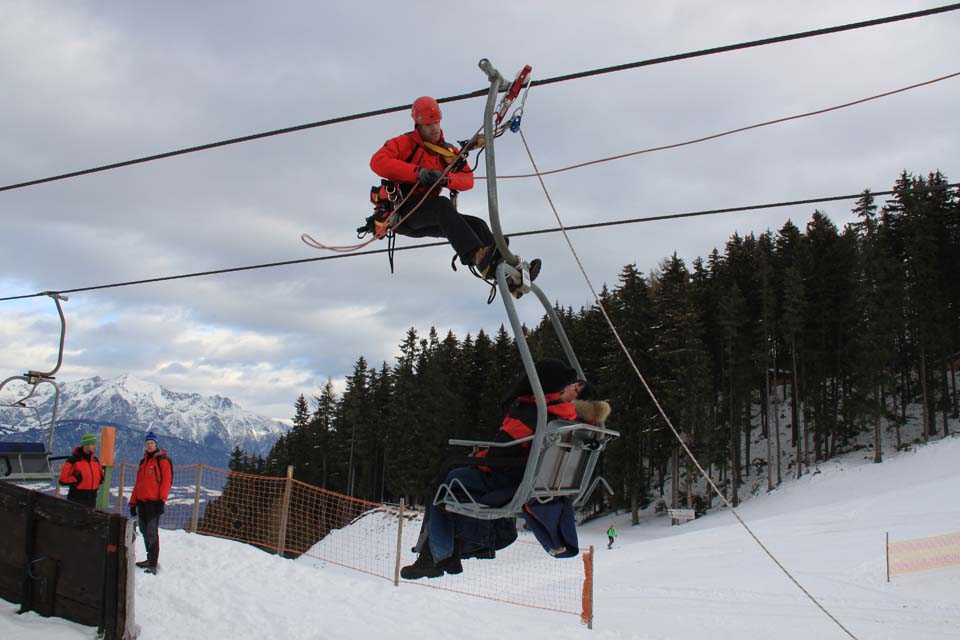 Zeitgerecht vor dem Start in die Wintersaison erfolgte die vorgesehene Übung zum Thema Liftevakuierung. Die engen zeitlichen Vorgaben, betreffend eine Evakuierung von Personen von einem nicht mehr betriebsfähigen Lift, erfordern trainierte Handgriffe unter Beachtung vilefältiger Sicherheitsanforderungen. Unter Stress, bei schlechter Witterung und Kälte sicher eine spezielle Herausforderung für zu Bergende und Retter.