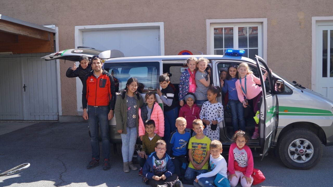 Am Freitag, 5.5., durften wir (Christian und Markus) im Namen der Bergrettung Hall 17 SchülerInnen der Volksschule Neu Rum in Begleitung von zwei Pädagoginnen bei uns begrüßen. Einen kurzweiligen und spannenden Nachmittag lang beschäftigten wir uns mit Funk, Erster Hilfe, dem Einsatzfahrzeug, natürlich unserem geduldigen Rettungshund Lucy – und zum Schluss einem gemeinsamen Eis. Allen Kindern durften wir eine Urkunde überreichen und uns der Frage stellen, wann die Kinder uns wieder besuchen kommen dürfen.